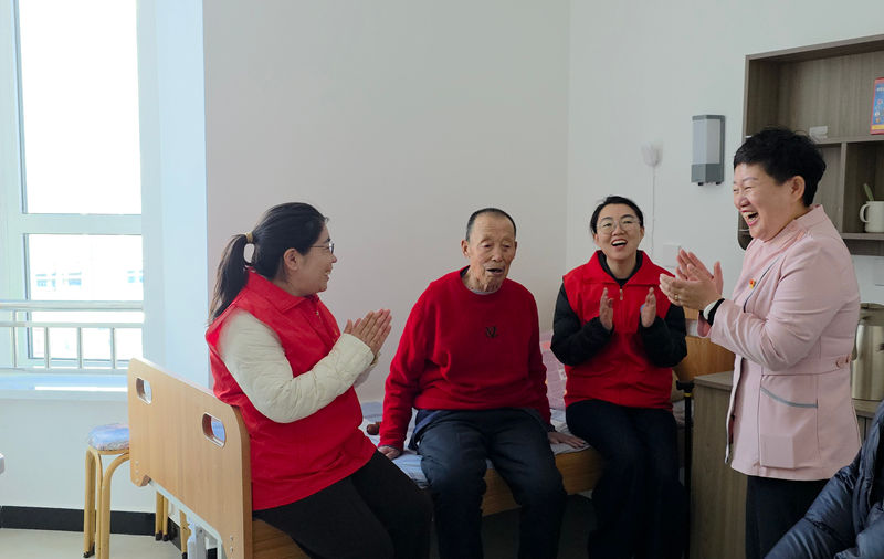 活动现场,在工作人员引导下,大家依次参观康养院活动娱乐区、健康监控系统运行平台、营养食堂、影展角、健身区域等功能场所,认真听取院内智慧养老、健康监测、膳食保障、文体服务等情况介绍,直观感受规范化、精细化养老服务。随后,大家来到二楼老人居住房间,与老人们围坐在一起,一边共同观看两会直播,一边亲切唠家常,细心询问老人身体状况与日常生活,耐心倾听心声期盼,看到老人眼角有脏东西时,党员干部主动拿出纸巾,小心翼翼地为老人擦拭干净,动作轻柔、神情关切,一举一动都饱含着对老人们的敬重与关爱。现场气氛温馨融洽。93 岁高龄的老人精神矍铄,现场唱响经典红歌,铿锵旋律、真挚情感感染在场每一个人,掌声与欢笑声不断。最后,大家与康养院工作人员深入交流,详细了解当前康养工作推进中的难点问题,紧扣铸牢中华民族共同体意识主线,凝聚民族团结共识。