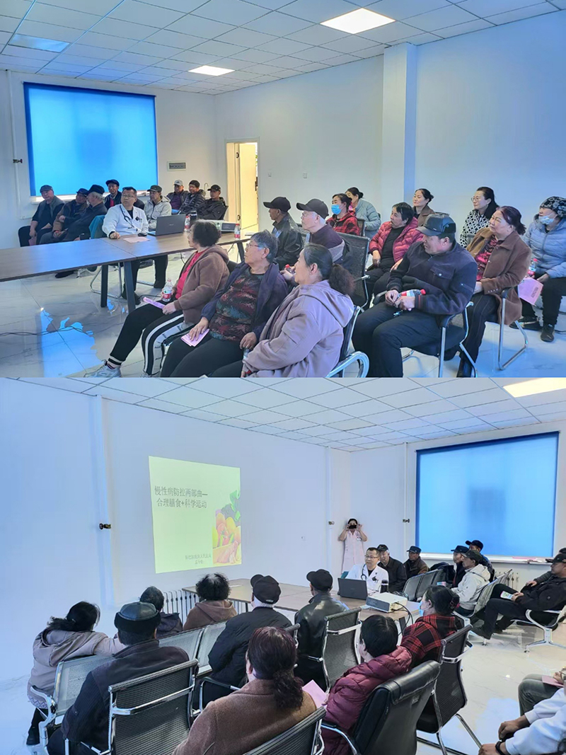 在健康讲座环节,旗人民医院孟令魁副主任医师医生围绕常见慢性病的防治,以及合理膳食、科学运动、心理健康等内容为讲座主题。结合居民日常生活实际,用通俗易懂的语言,深入浅出地讲解了疾病的成因、症状、预防措施以及科学的饮食、运动方法等知识。讲座过程中,医生还与居民进行互动,解答居民提出的健康问题,现场氛围十分热烈。居民们纷纷表示,通过讲座学到了很多实用的健康知识,对自身健康管理有了更深入的认识。
