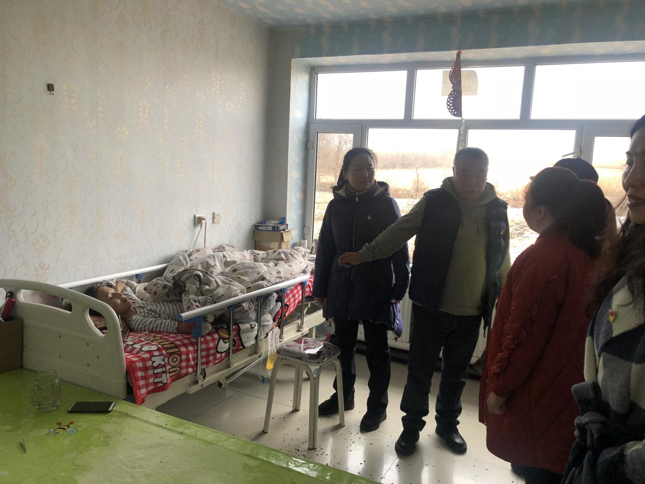 在赵文芝老人家,老人75岁高龄,一个人生活,一见到我们便打开了话匣子:“这么冷的天你们还来看我,快进屋坐。”当问到最近身体怎么样,生活上有什么困难时,老人开心的说:“有你们经常来看我,给拿吃的用的,现在啥都不缺,我现在的身体也硬朗,连这房子都是国家给盖的,烧上柴禾,可暖和了。感谢你们,感谢党,感谢主席”当志愿者们与老人话别时,跟老人说:“大娘,以后我们会经常来看您,有啥困难您就吱声”。老人连连说好,还出来送我们很远。