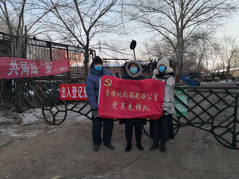 一是召必来,快速集结凝聚力量。接到莫旗新冠肺炎疫情防控指挥部的任务后,第一时间集结力量,由5名党员6名非党职工主动请战组成的莫旗委编办党员先锋队,正式接管金凤杰单体楼防控工作。及时成立领导小组,明确任务分工,科学制定值班值守时间表、人员出入登记表。先锋队队员冲锋在前,敢于挑战、不惧风雪、坚守一线,以最快的速度挂条幅、贴标语、做宣传,连夜接通电线、搭建防护栏、安装铁皮门,尽管风雪交加、天寒地冻却阻挡不住抗疫的脚步,为广大群众筑起一道坚固的防护墙,充分发挥了基层党组织战斗堡垒作用和党员先锋模范作用。
