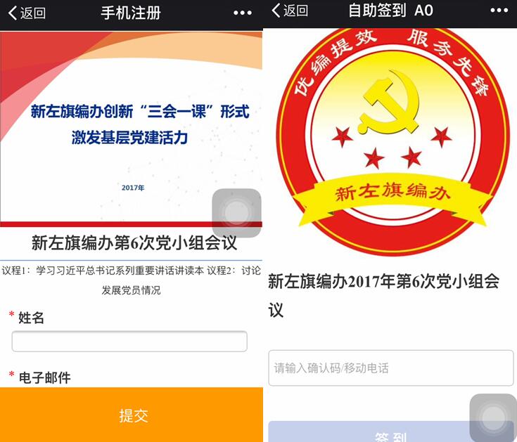 近日,新左旗编办依托微信自助报名签到会务系统,实现“三会一课”扫码签到。与会者需要先关注会议主办方的微信公众账号,然后邀请函就自动推送给与会者,通知会议主题、内容、时间、地点,参会者可以直接在微信内填写报名表,提交报名信息。到会场后,参会者只需要扫描二维码即可完成签到。这种模式无论与会人数多少,都可以快速准确的统计出与会人数,更加高效环保节能,节省了大量的人力和时间。