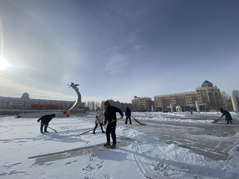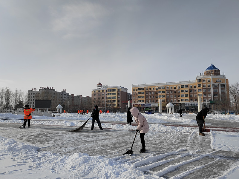 尽管天气寒冷,大家依旧怀揣着为群众服务的热忱之心,纷纷拿起铁锹、雪铲、笤帚,齐心协力、配合默契,全心全意投入到清雪工作中。铲的铲、推的推,场面一片热火朝天。清雪期间,新左旗委编办党员注意到环卫工人清雪工作量大,主动承担部分区域清雪工作,为环卫工人减轻负担,同时,不忘提醒过路行人“天冷路滑,安全出行”。
