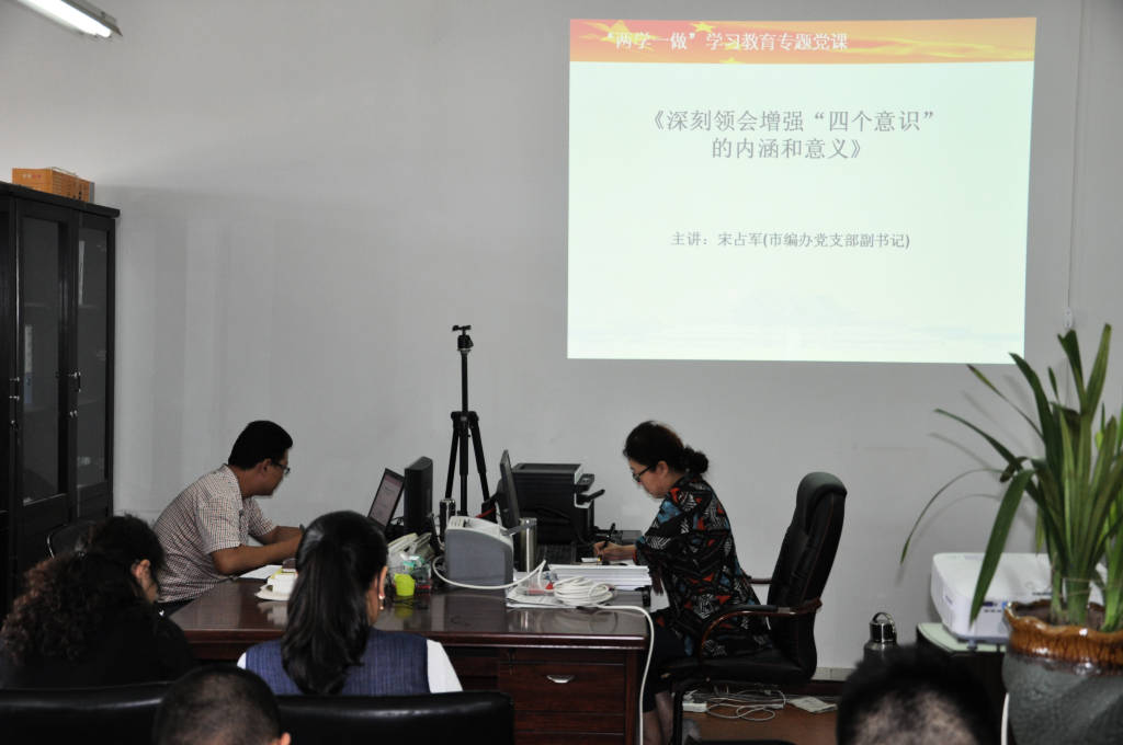 一是讲授党课,强化“四个意识”。由支部副书记宋占军同志主讲了题为《深刻领会增强“四个意识”的内涵和意义》的党课。党课从“四个意识”提出的背景、“四个意识”的科学内涵、“四个意识”的重要性、“四个意识”不强的具体表现、如何增强“四个意识”五个方面对“四个意识”进行了深入浅出的讲解,引导党员牢固树立“四个意识”。