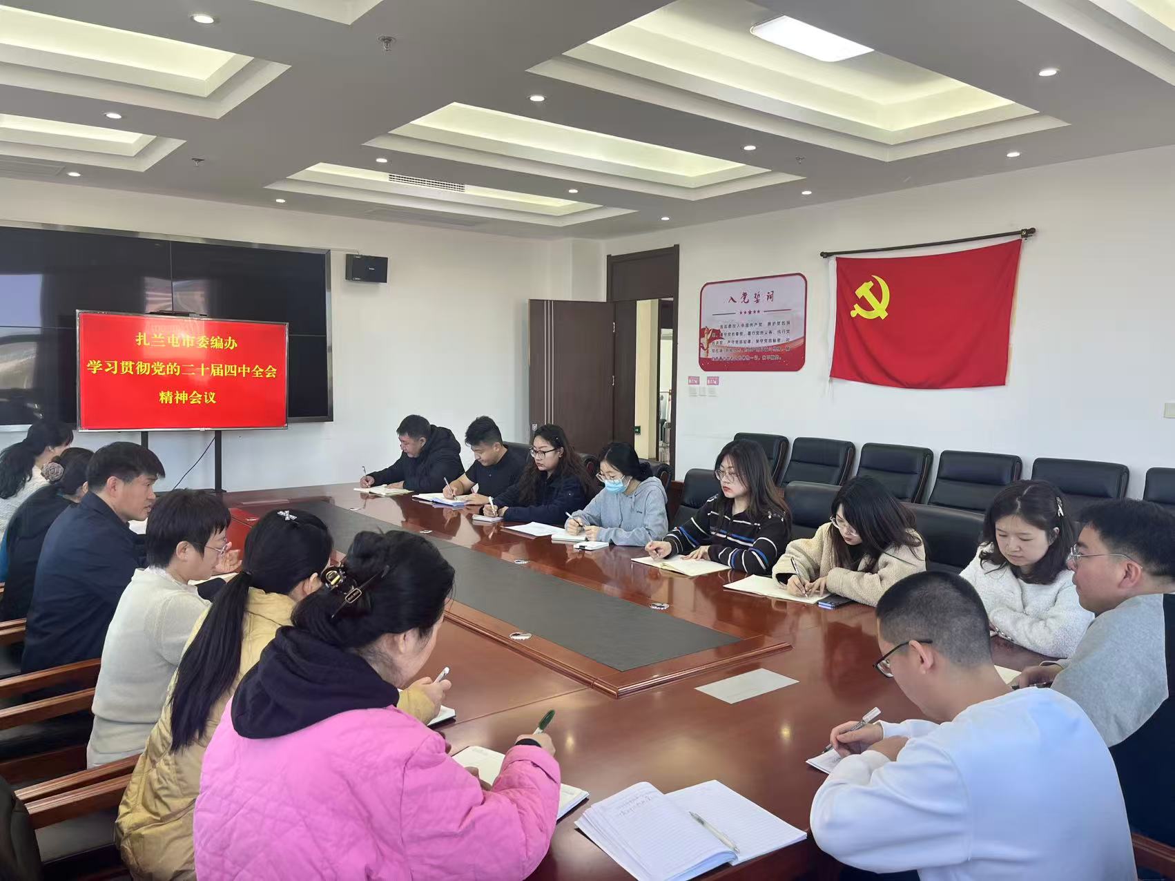 扎兰屯市委编办召开学习贯彻党的二十届四中全会精神会议